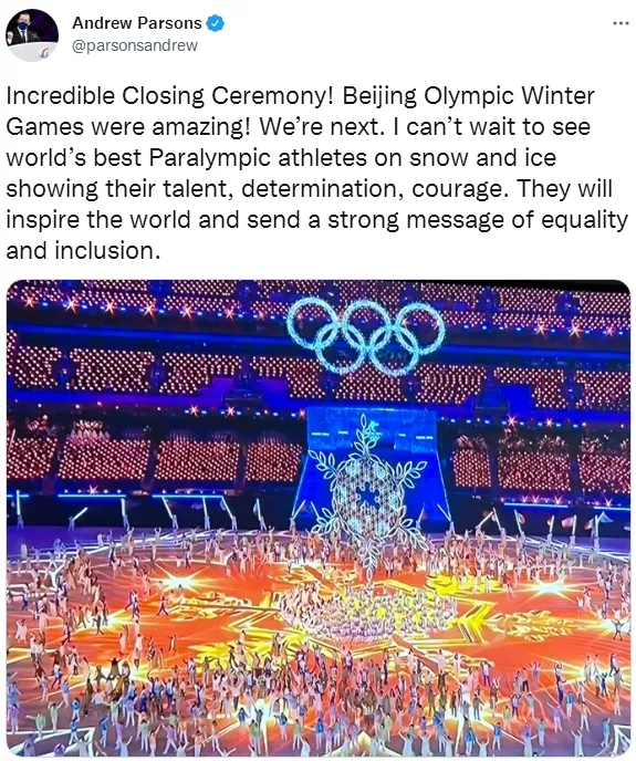 盛贊冬奧會閉幕式,