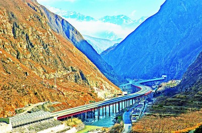 “超級工程”讓天塹變通途,助力西部邁上高質量發展之路,為共同富裕提供重要支撐。圖為起于四川阿壩藏族羌族自治州汶川縣,止于馬爾康市的汶馬高速公路克枯大橋。新華社發
