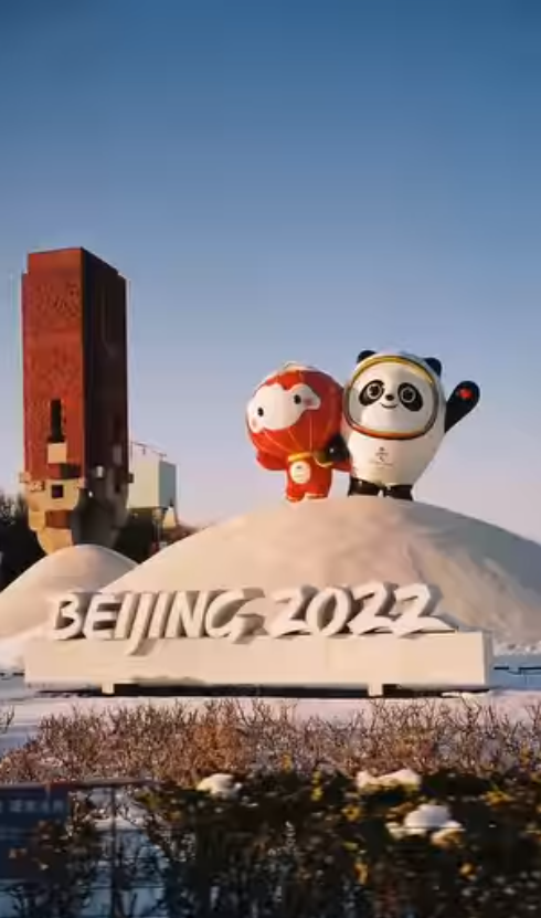 在他分享的視頻中,首先出現的就是可愛的“冰墩墩”和“雪容融”雕塑,正朝著鏡頭招手。