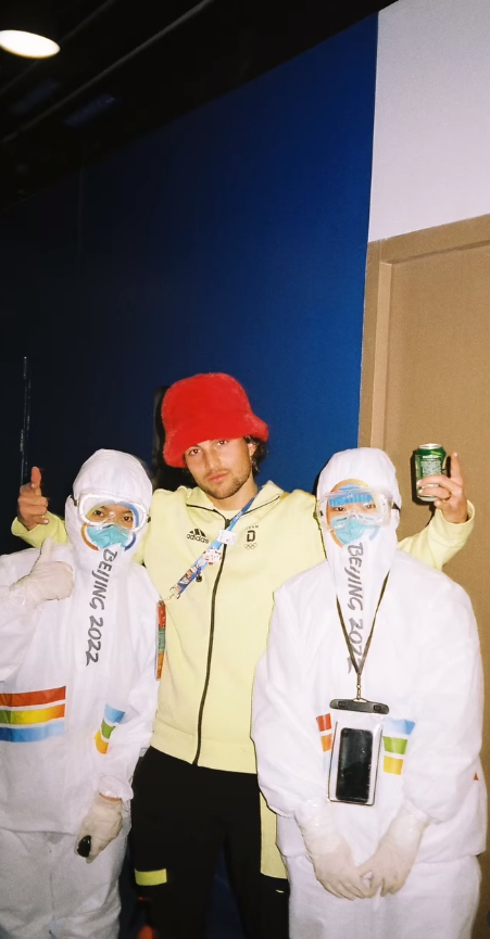 隨后,他戴著那頂與谷愛凌互換的紅帽子,與冬奧會的中國工作人員開心合影。這頂紅帽子是萊昂在冬奧會開幕式當天與谷愛凌交換而來,萊昂當時特意發文用拼音打上“wo ai wo de peng yo”(我愛我的朋友)幾個字。