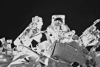 神舟十三號航天員首次出艙活動。新華社發(fā)