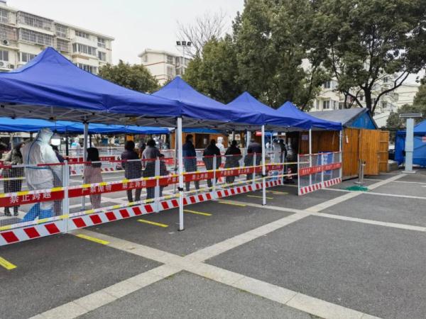 在通安鎮的多個采樣點位,機關下沉工作人員、熱心居民組成的志愿者們根據村(社區)安排,維護現場秩序、解答居民問題、做好人員引導。華通六區居民沈福男是社區的忠實志愿者,蘇州本輪疫情以來,他幾乎每天早上7點準時到社區“打卡”,幫助社區工作人員一起開展防疫工作。
