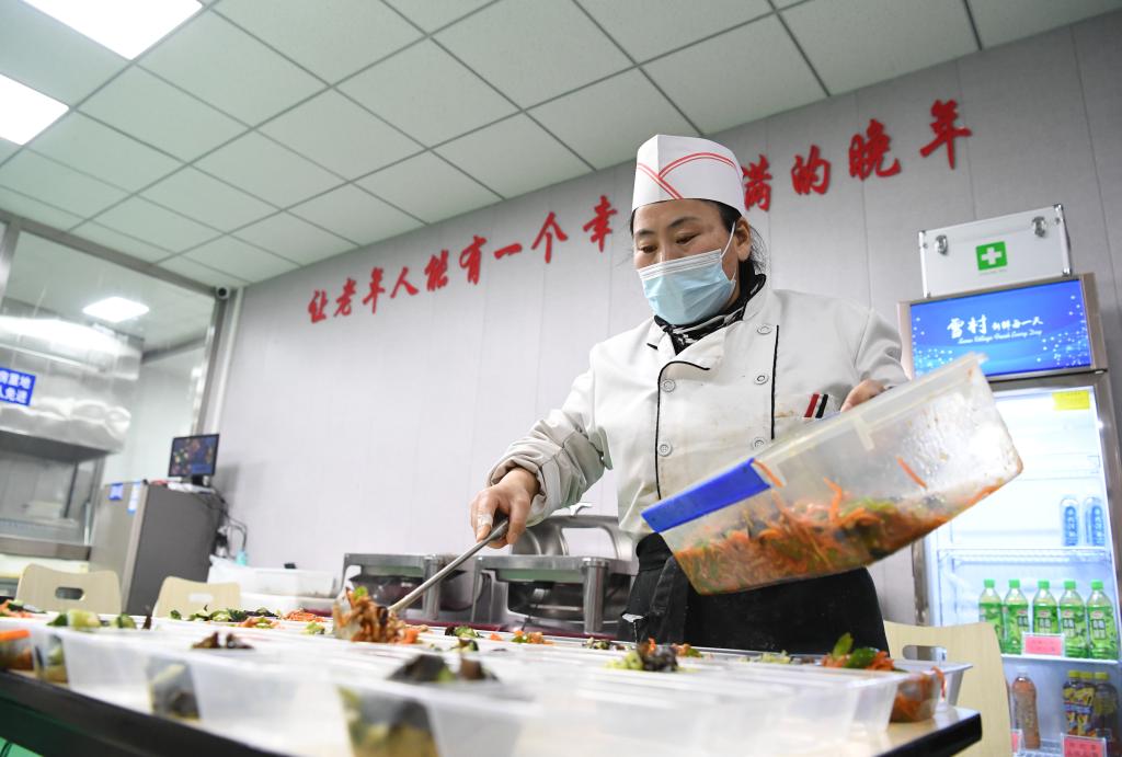 河北省廊坊市廣陽區上善頤園小區社區食堂工作人員在長者餐區工作(2022年1月4日)。新華社發(孫寶宇 攝)
