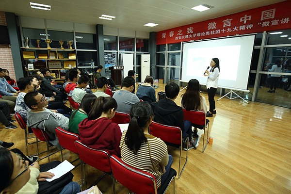 錄制前的電話初采時,聽聞李婧竟是比記者僅大一歲的博士生,我訝異不止。清脆活潑的聲音,大方清晰的談吐,正是一場場宣講留在她身上的印記,也帶著遠遠超出她這個年紀的穩重和堅定。從2017年作為第一批宣講人加入西安交通大學“學生微宣講團”開始,從山村小學到重點高校,從工廠車間到領軍企業,從邊防軍營到繁華都市,李婧的足跡遍布22個省(市、自治區),參與宣講工作。
