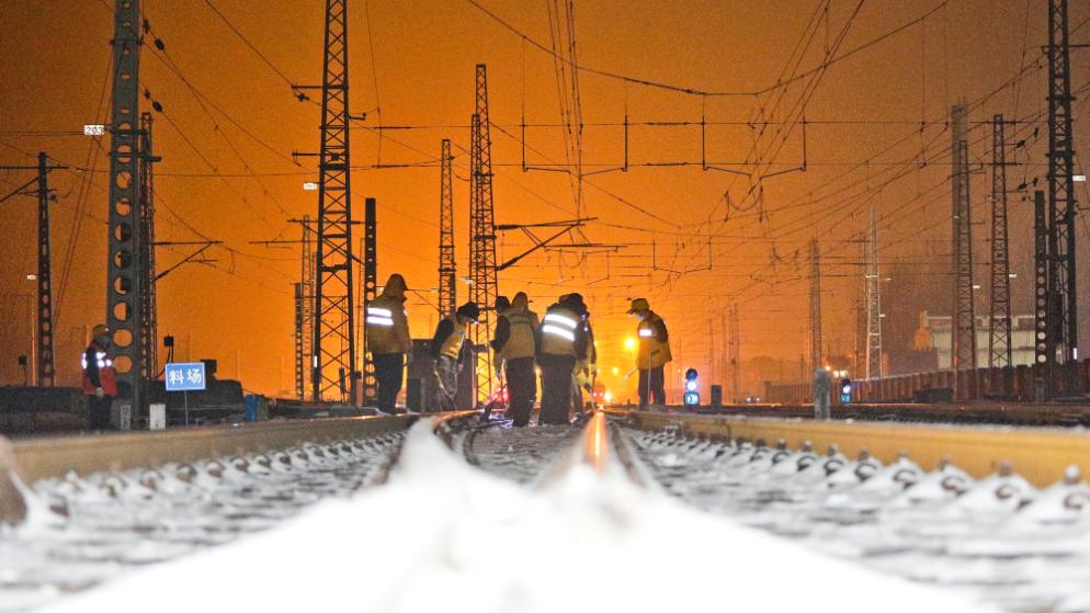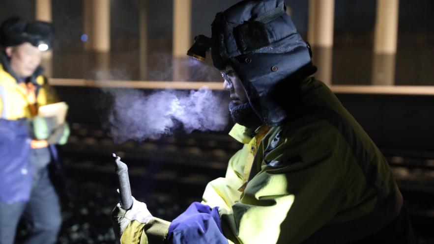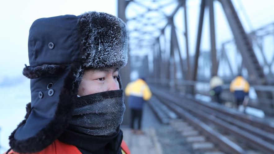 鐵路橋梁上,嚴寒下的堅守