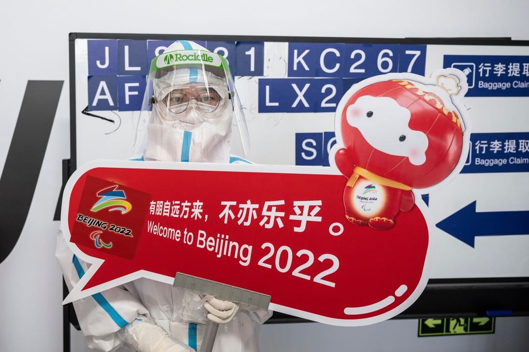 瑞士代表團曬抵京畫面:冬殘奧村燈火通明 志愿者持雪容融歡迎牌