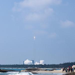 2月27日11時06分,我國在文昌航天發射場使用長征八號運載火箭成功將22顆衛星發射升空,創造我國一箭多星新紀錄。 新華社記者 張麗蕓 攝