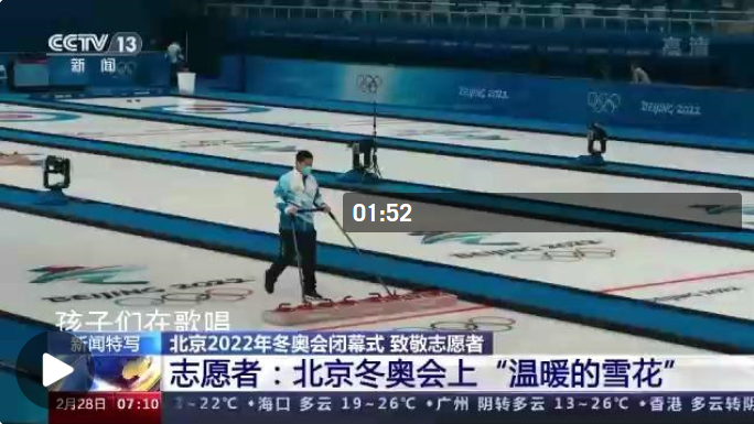 北京2022年冬奧會志愿者 奚子潔:當屏幕上亮起我們的生活和工作的瞬間,我就想到當時在冰天雪地中那些困難與險阻,真的是都算不上什么,我覺得這次奧運會帶給我的精神財富是將是永久的。