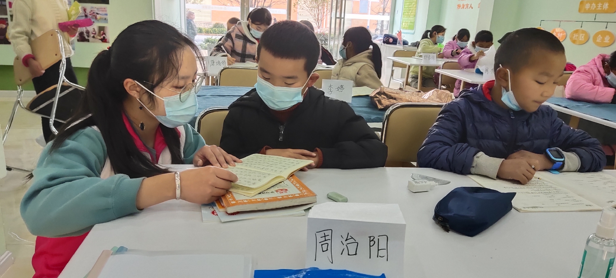 云南會澤新城婦聯項目點的志愿者正為孩子們輔導功課。(受訪者供圖)