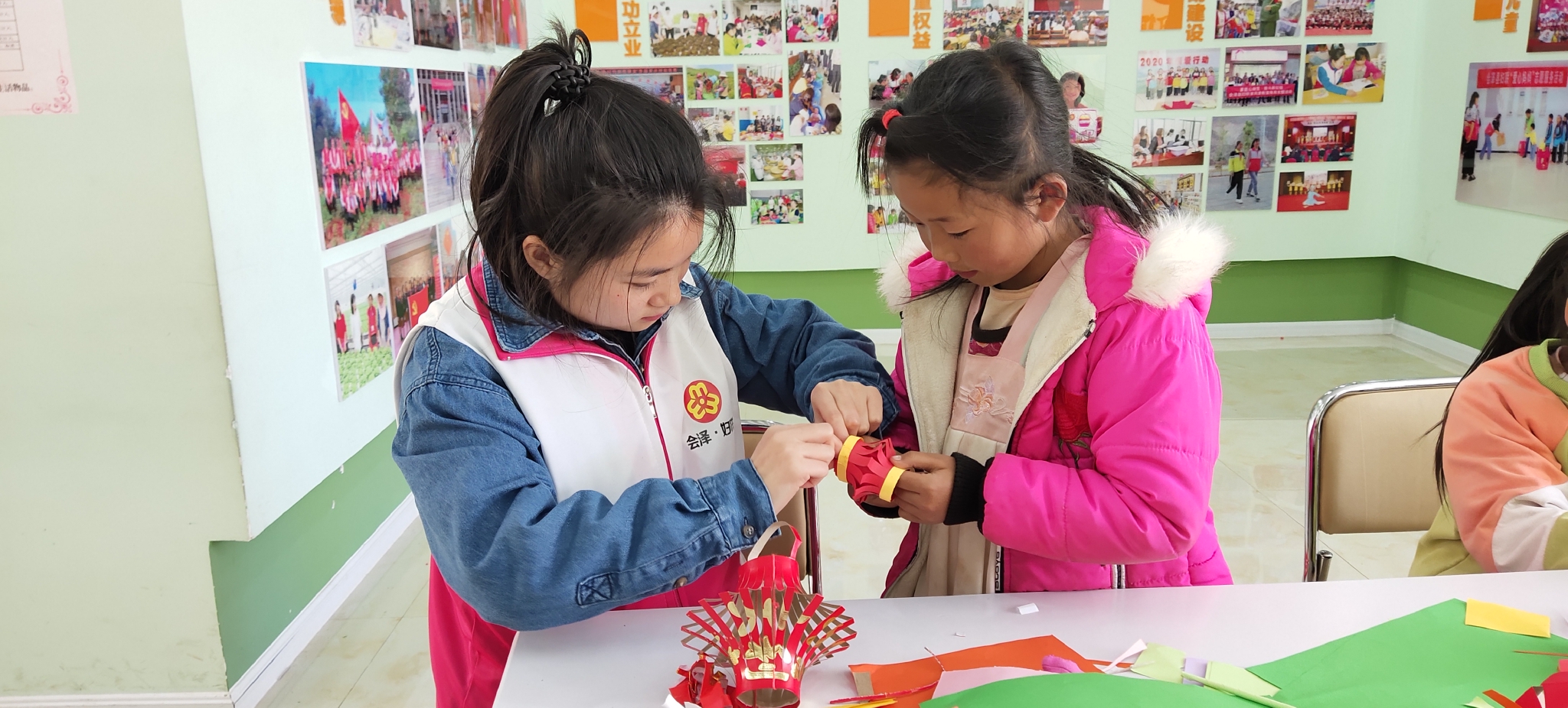 云南會澤新城婦聯項目點的志愿者正教授孩子做手工藝品。(受訪者供圖)