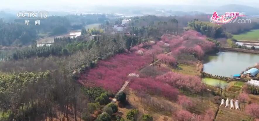 春日晴好,正是賞花時節。現在,我們看到的是安徽銅陵天門鎮的梅園。怒放的梅花在初春陽光的溫暖呵護中,展現出了美好的身姿,遠望如輕輕軟軟的紅霞錦緞鋪陳在山野鄉間,近觀一枝枝疏影橫斜一團團姹紫嫣紅爭相斗艷。游客置身其中,暗香拂面、沁人心脾。這里的近萬株梅花,有紅梅、白梅、綠梅、黃梅等110多個品種正在陸續綻放,吸引了眾多踏青賞花的游客。近年來,當地發掘鄉村優美田園風光資源,推進農業、林業與旅游等產業深度融合,促進農民增收,為鄉村振興注入新活力。