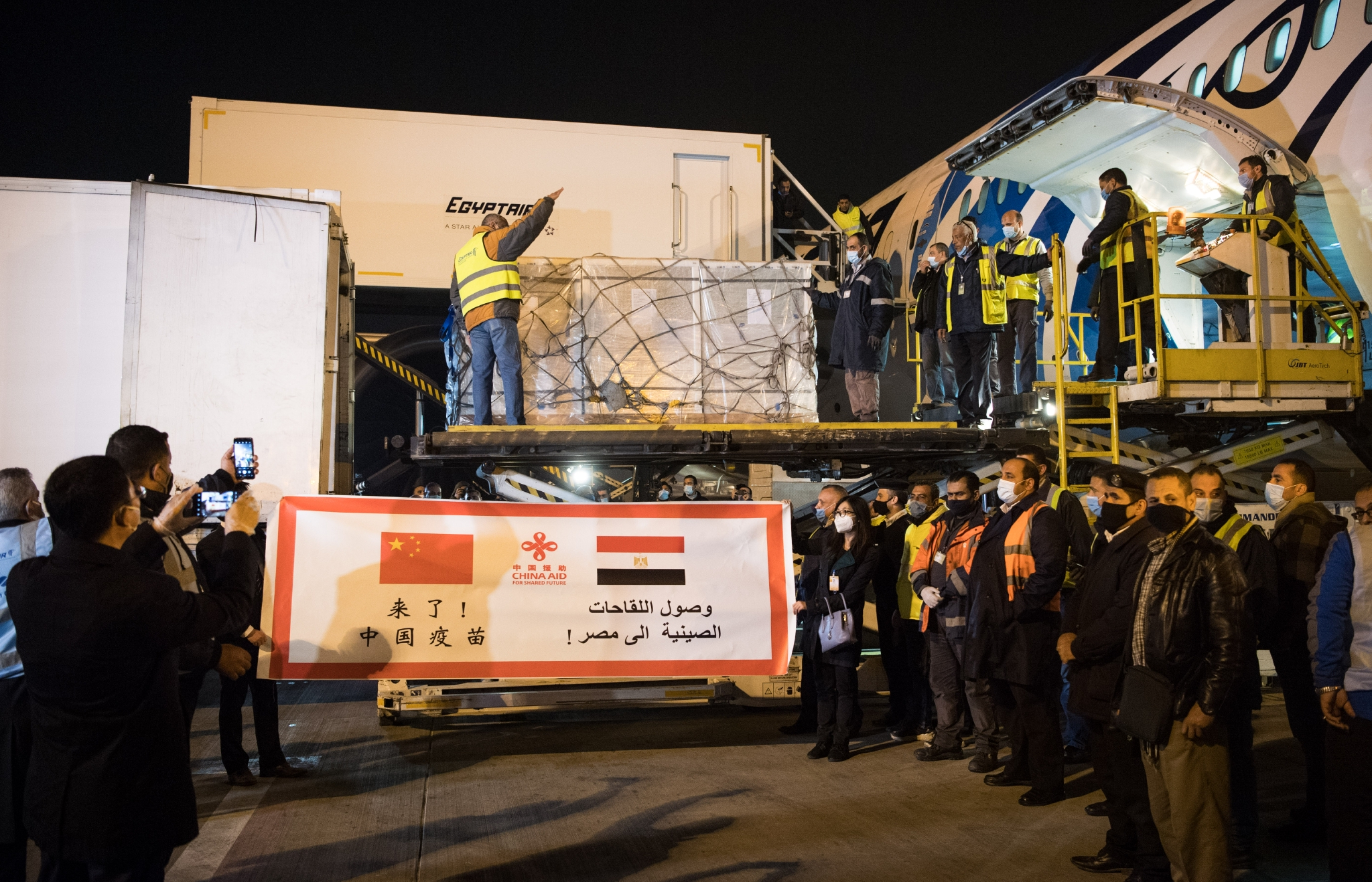 2021年2月23日,中國(guó)援助埃及的首批新冠疫苗抵達(dá)埃及開羅國(guó)際機(jī)場(chǎng)。(新華社記者鄔惠我攝)