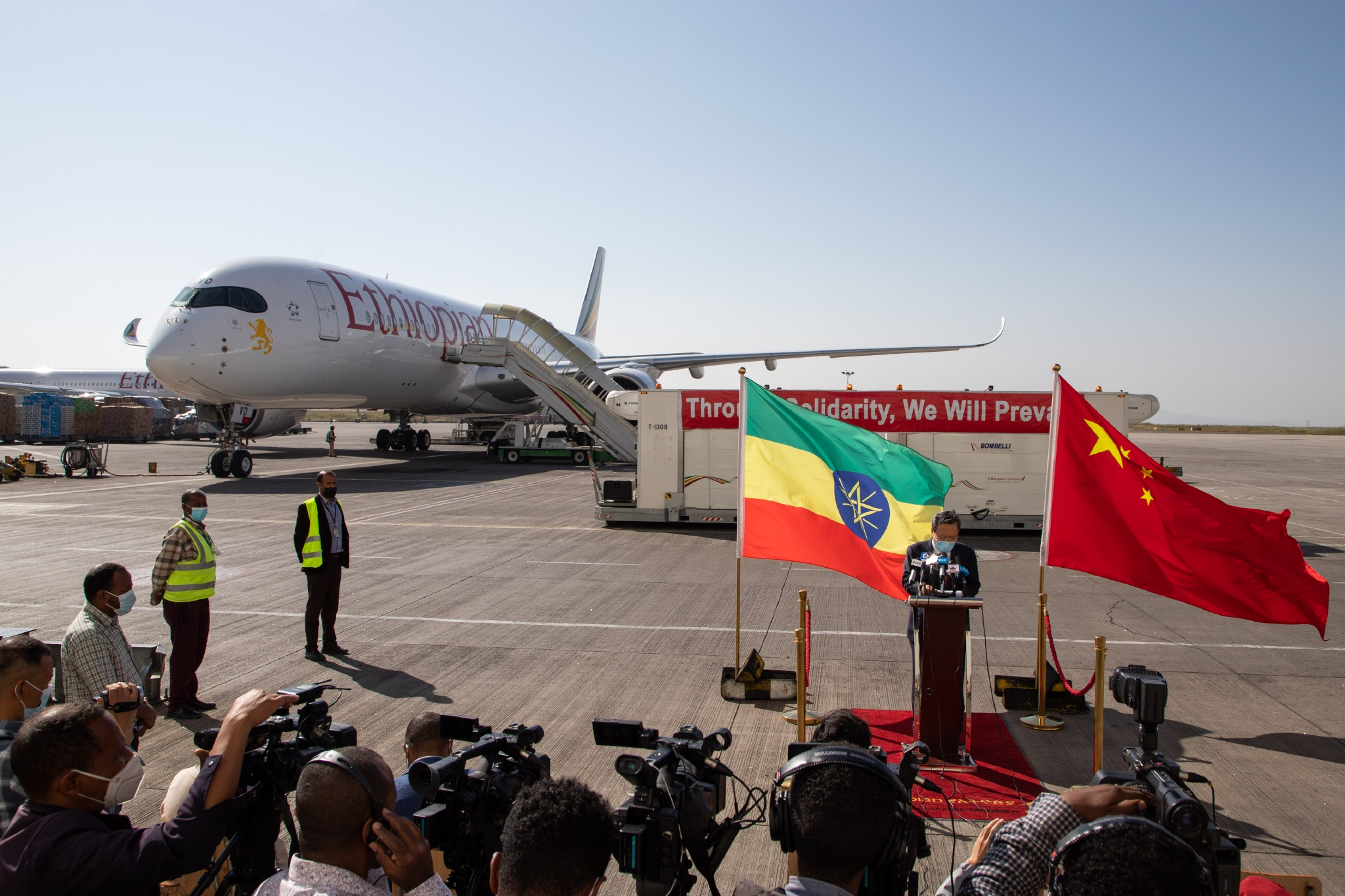 2021年10月24日,新一批中國(guó)政府援助埃塞的新冠疫苗運(yùn)抵埃塞俄比亞首都亞的斯亞貝巴。(新華社發(fā),邁克爾·特韋爾德攝)