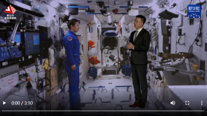 這次,我們通過新華社新立方智能化演播室,運用虛擬空間、XR等創新技術,打破時空限制,讓主持人“來到”浩瀚宇宙的中國空間站,與王亞平代表一起圍繞履職故事,展開一場跨越時空的對話。