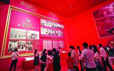 觀眾在中國共產黨歷史展覽館參觀。新華社發