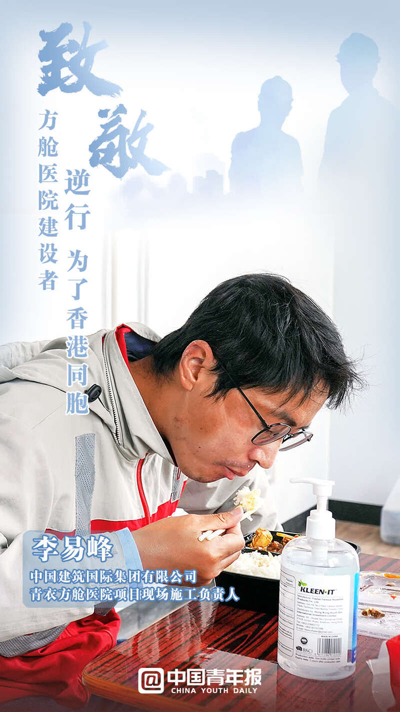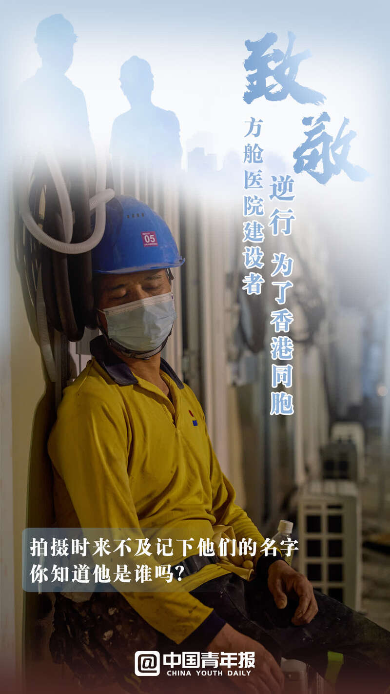 中國青年報客戶端北京3月9日電(中青報·中青網記者 寧迪 金卓 制圖:馬群 拍攝:孟曉白)日曬雨淋間,戴著口罩的臉,捂成了兩種顏色;雙耳后側,口罩勒痕反復摩擦,出血后留下了結痂;站在戶外,手上捧著盒飯,眼睛望向的卻是工地的進度;任何一處有支撐的物體,都能成為他們累極了的依靠。這群人中,有內地員工,也有香港員工,更有00后……面臨香港不斷攀升的新冠確診人數,他們甚至來不及與家人告別,就奔赴工地,披星戴月趕建出一座座中央援港方艙醫院。在這里,建設者只有一個共同的目標——搶救生命,建設希望。致敬,辛苦!