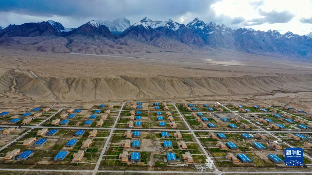這是在新疆塔什庫爾干塔吉克自治縣縣城附近拍攝的塔提庫力易地扶貧搬遷安置點(2019年7月1日攝,無人機(jī)照片)。新華社記者 胡虎虎 攝