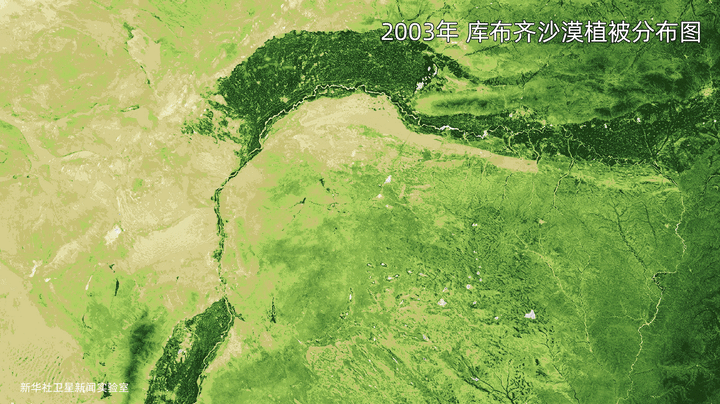 這是庫布齊沙漠2003年和2021年的衛星植被分布圖對比。