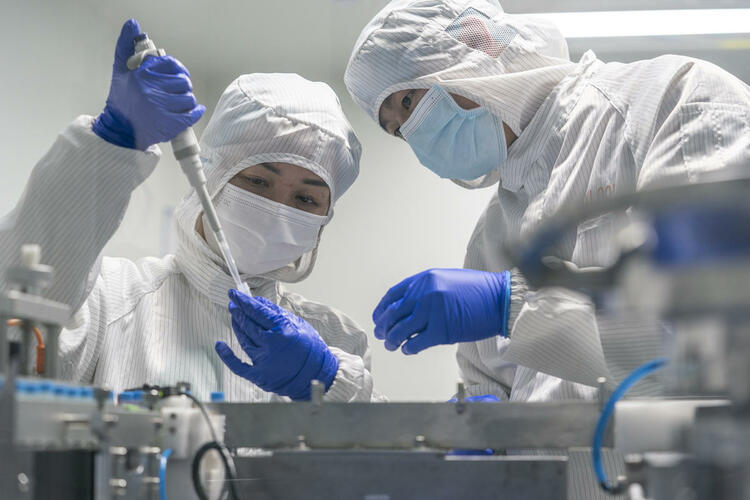 2022年2月8日,武漢東湖高新區明德生物新冠核酸檢測試劑生產線一片繁忙。(湖北日報全媒記者 魏錸 攝)