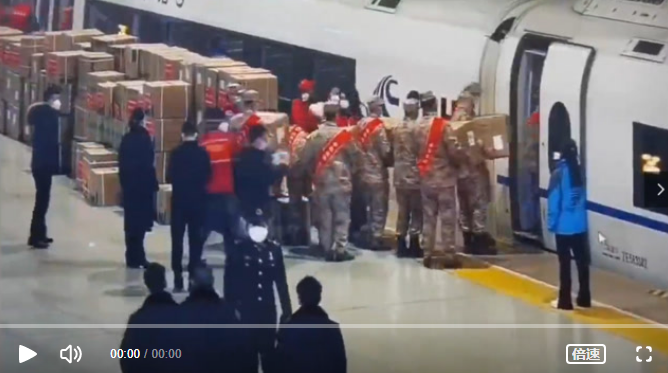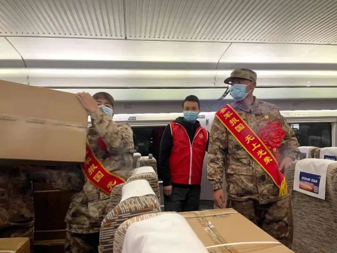 當(dāng)候車新兵遇到援吉林防疫物資