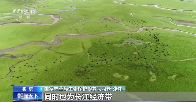 國家林草局生態保護修復司司長 張煒:(林業重點生態工程)為我國的生態屏障進一步筑牢作出貢獻,同時也為長江經濟帶、黃河(流域)高質量發展、京津冀一體化(等)國家重大戰略提供了重要的生態支撐。