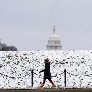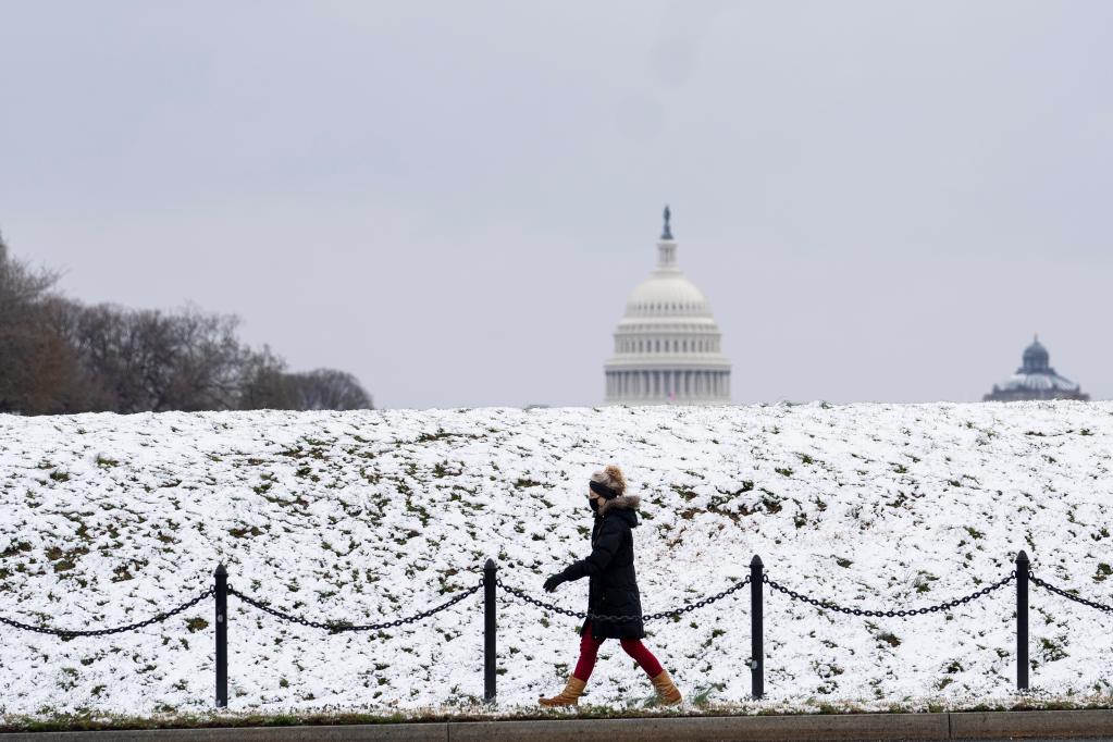 3月12日,在美國(guó)首都華盛頓,一名女子從國(guó)會(huì)大廈附近走過。(新華社記者劉杰攝)