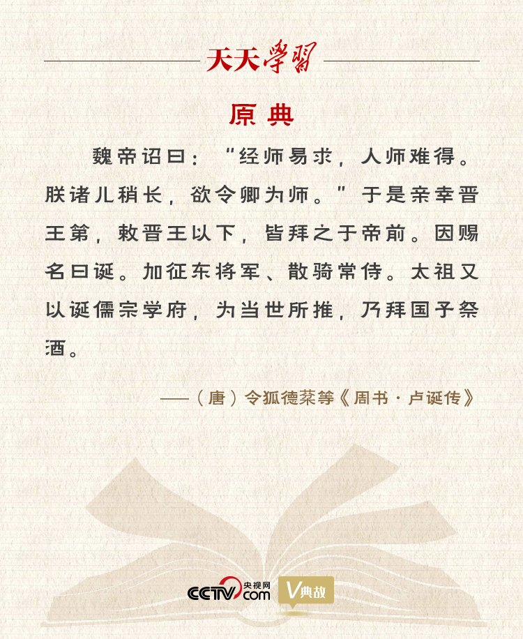“經(jīng)師易求,人師難得”語出《周書·盧誕傳》,意思是找一個(gè)只是傳授經(jīng)學(xué)知識的老師很容易,找一個(gè)教你怎么做人且以自己的行為加以示范的老師卻很難。