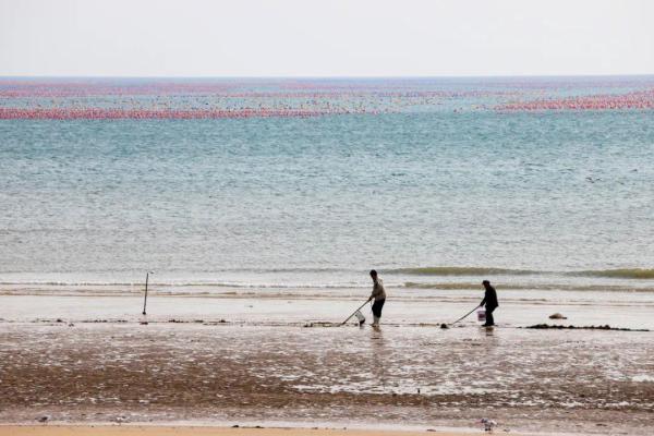 △2022年3月1日,山東青島,西海岸新區(qū)黃海之濱,漁民在捕蛤蜊。