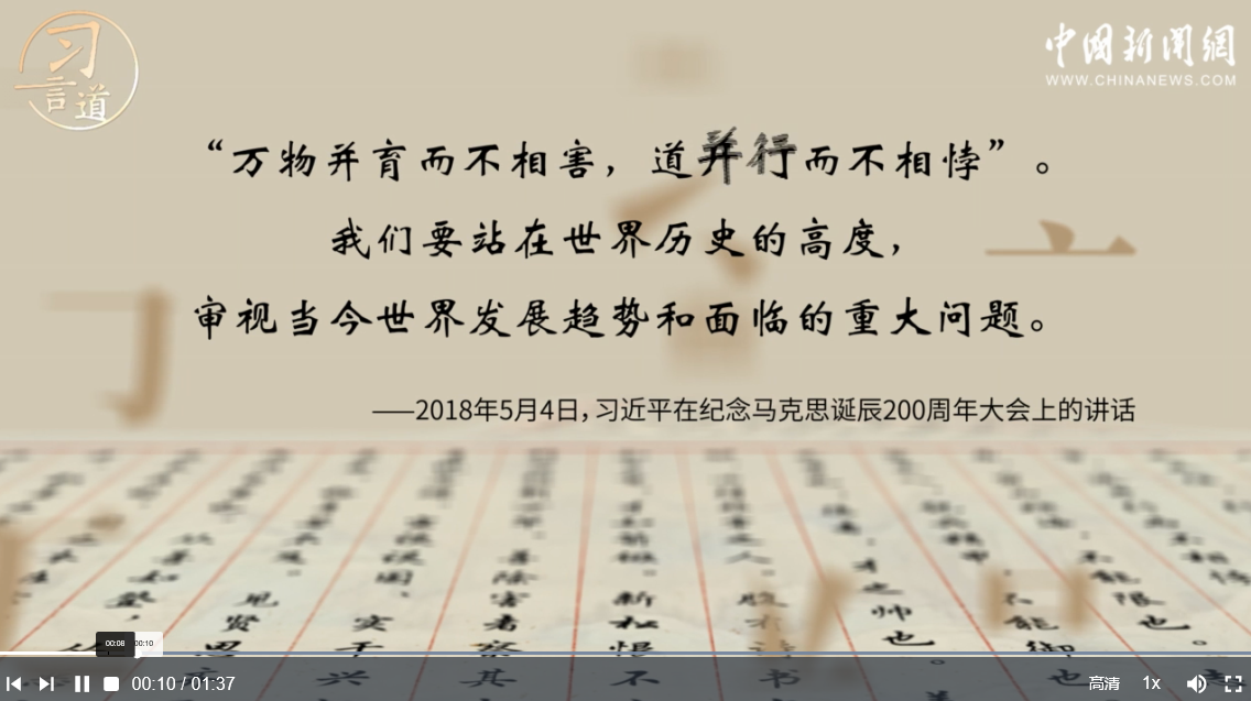 “和而不同”是中國人幾千年來推崇的思想。習近平引用《中庸》中的“萬物并育而不相害,道并行而不相悖”,強調要站在歷史高度審視世界發展趨勢,努力構建人類命運共同體。一起來跟總書記學用典。