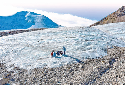 第二次青藏高原綜合科學考察研究隊在進行拉薩河1號廓瓊崗日冰川環(huán)境考察。