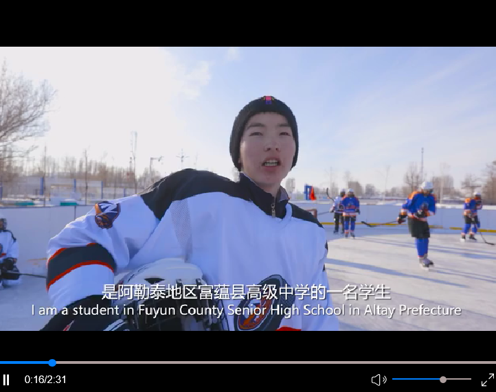吾拉哈提·別依斯別克是阿勒泰地區富蘊縣高級中學的一名學生,也是冰球隊的一名隊員。他平時會在縣體育館訓練冰球,和隊友們一同訓練一同嬉鬧非常快樂。