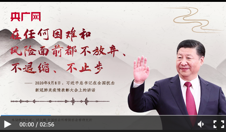 這段話出自2020年9月8日習近平總書記在全國抗擊新冠肺炎疫情表彰大會上的講話。