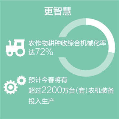 大數(shù)據(jù)驅(qū)動“新農(nóng)具”更顯神通,高科技為春耕保駕護(hù)航。當(dāng)前,全國農(nóng)作物耕種收綜合機(jī)械化率達(dá)72%,預(yù)計今春將有超過2200萬臺(套)農(nóng)機(jī)裝備投入生產(chǎn)。