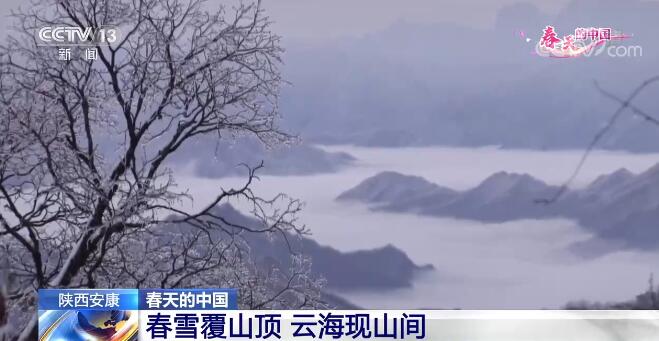這里是位于秦巴山區深處,陜西省最南端的安康市鎮坪縣。一場雨雪過后,當地海拔最高的化龍山出現了冰掛云海景觀。淡淡的白雪覆蓋在山巒之上,樹上的冰晶在晨光中更顯玲瓏剔透,山谷間水汽升騰,云海如潮水般波濤洶涌。這里還有國家級自然保護區,野生動植物資源豐富。