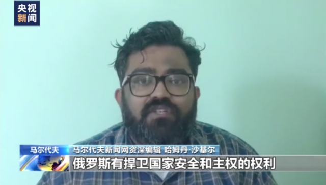 馬爾代夫新聞網資深編輯 哈姆丹·沙基爾:俄羅斯有捍衛國家安全和主權的權利,多數歐盟國家也是北約成員國,他們在這場沖突中沒有任何收獲,既沒有戰略收獲,也沒有經濟收獲,這對俄歐雙方來說都是損失,因為俄羅斯是歐盟的主要經濟伙伴之一。如果北約信守對蘇聯許下的不東擴的承諾,這場沖突本來是完全可以避免的。