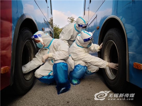 “人員已安全到達,轉運任務順利完成。”王為明是“疫情轉運專班”的一名駕駛員,昨天(29日)上午8點接到轉運任務后,他立即穿戴防護裝備,全副武裝后發車前往火車站,將1名上海返錫乘客送到指定地點進行隔離。完成轉運后,他又開著轉運車到消毒點給車輛進行消殺工作,由于長時間佩戴口罩、護目鏡,他的臉上留下了一道道紅印子。