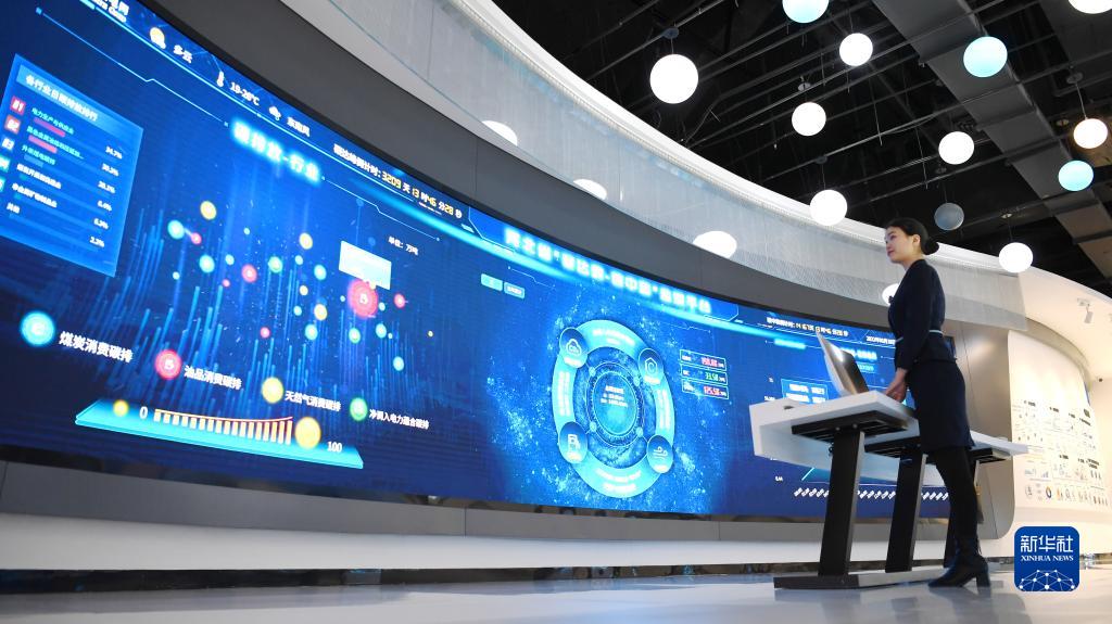 這是雄安新區(qū)劇村變電站“碳達(dá)峰、碳中和”監(jiān)測平臺(3月18日攝)。新華社記者 朱旭東 攝