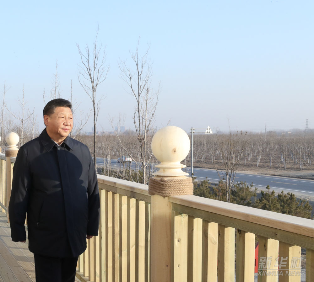 2019年1月16日至18日,習(xí)近平在京津冀考察,主持召開(kāi)京津冀協(xié)同發(fā)展座談會(huì)并發(fā)表重要講話(huà)。這是1月16日下午,在雄安新區(qū)“千年秀林”大清河片林一區(qū)造林區(qū)域,習(xí)近平登上秀林驛站二層平臺(tái)遠(yuǎn)眺林區(qū)全貌。