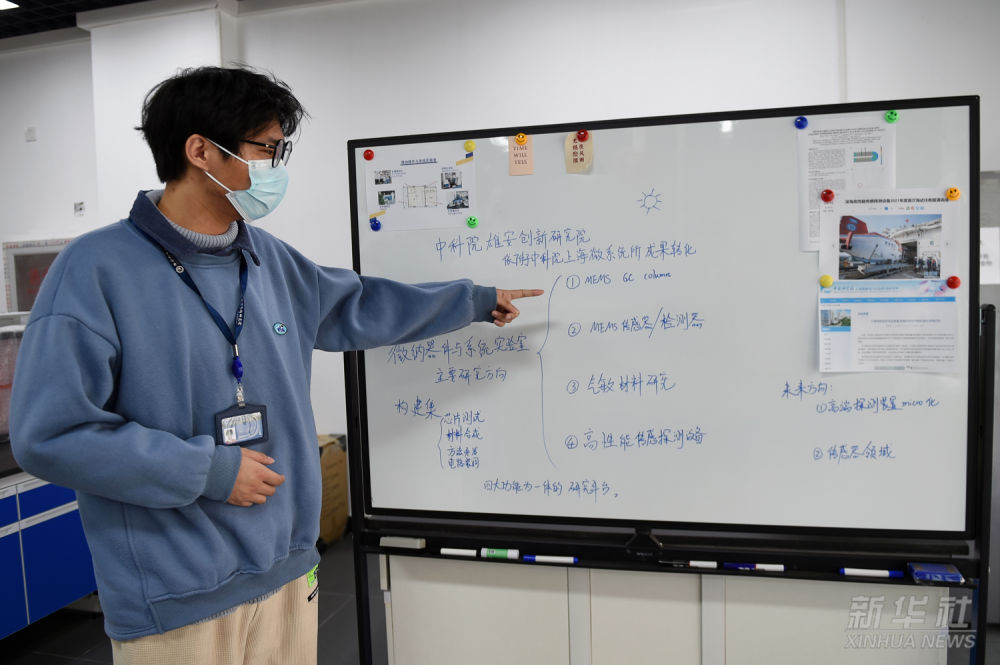 中科院雄安創(chuàng)新研究院工作人員介紹微納器件與系統(tǒng)實(shí)驗(yàn)室主要研究方向(2022年3月8日攝)。2019年12月,中國(guó)科學(xué)院與河北省政府簽署協(xié)議,合作共建“雄安創(chuàng)新研究院”,重點(diǎn)突破產(chǎn)業(yè)基礎(chǔ)性關(guān)鍵技術(shù)、新興產(chǎn)業(yè)核心技術(shù)和開(kāi)辟新領(lǐng)域的變革性技術(shù),推動(dòng)研究成果轉(zhuǎn)移轉(zhuǎn)化。