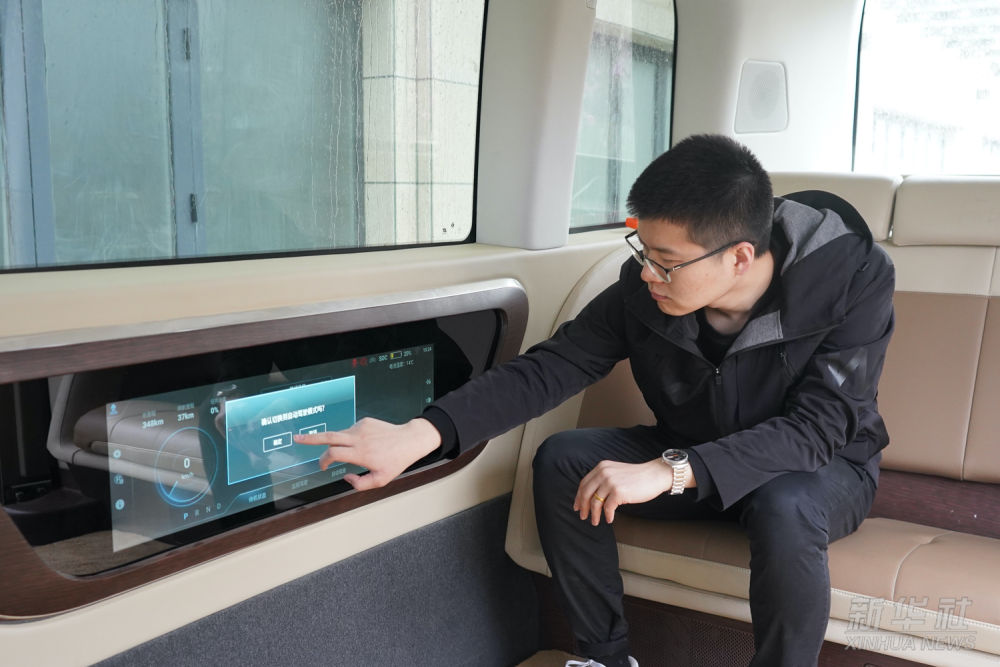 在雄安智繪未來(lái)科技園,雄安數(shù)字交通實(shí)驗(yàn)室工作人員操控?zé)o人駕駛汽車(chē)進(jìn)行自動(dòng)駕駛(2021年3月26日攝)。