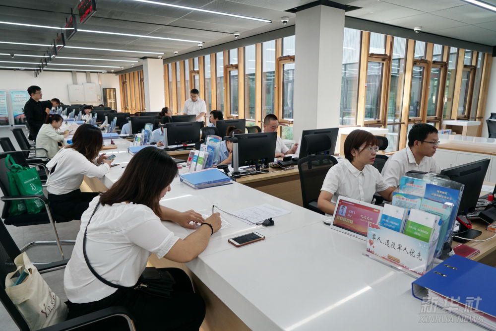 群眾在雄安市民服務(wù)中心內(nèi)辦理業(yè)務(wù)(2019年1月17日攝)。2021年,雄安新區(qū)提出“一窗受理、一網(wǎng)通辦、一次辦結(jié)、一枚印章管到底”的“四個(gè)一”審批模式,推動(dòng)技術(shù)、人才、資金等要素資源集聚。