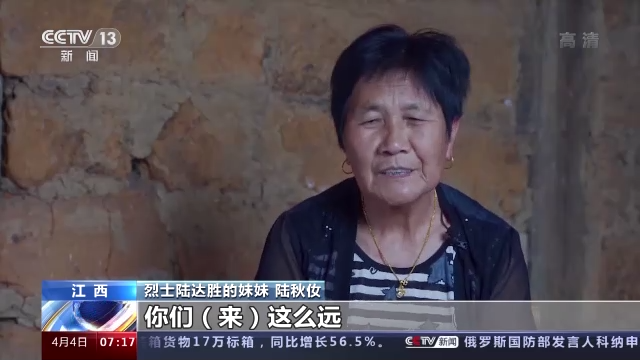 烈士陸達勝的妹妹 陸秋?:萬萬沒想到。你們(來)這么遠,還不是說在縣里,不是說在鄉里,而是隔山隔水隔幾個省來找我們烈屬。