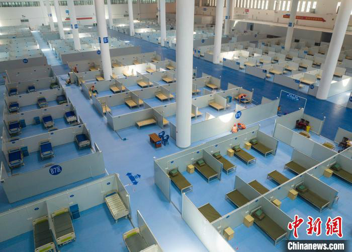 中新網海口4月6日電 (符宇群)“預計海口方艙醫院基礎設施4月8日建成,確保方艙醫院接到疫情防控指揮部投入使用指令后2天內能快速投入使用。”海口市城建集團副總經理毛昌成4月6日介紹,海口市方艙醫院各項建設工作正有條不紊推進中,目前7號館已采購并安裝到位病床1000張,已聯系大型商超等供應商,可提供2000套日用品及辦公用品根據需要及時到位。