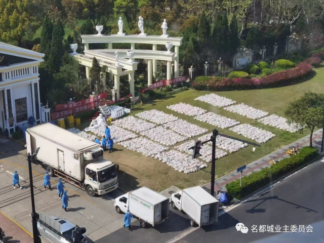 據公眾號“名都城業主委員會”介紹,封控期間,該小區1541戶居民“足不出戶”,為了確保核酸抗原檢測盒分發和保供菜卸貨發放的順利,居委會干部、物業工作者和廣大志愿者們都在付出努力。