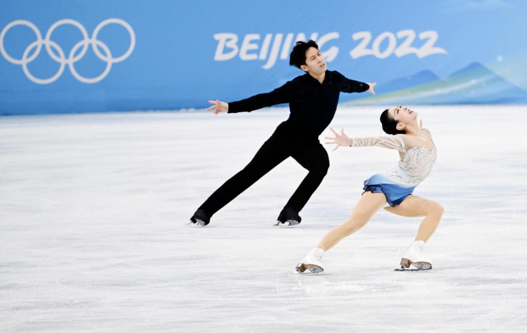 2月19日,北京2022年冬奧會(huì)花樣滑冰雙人滑自由滑比賽,中國選手隋文靜(前)/韓聰奪得雙人滑冠軍。新華社記者李一博攝