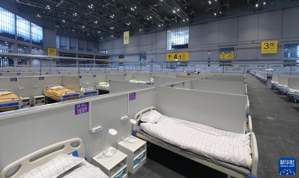 根據整體設計,“四葉草”的8個展館根據各自條件,被改建成一層或二層的方艙,整個“四葉草”共被改建成14個方艙,整體完工后有望提供5萬張床位。