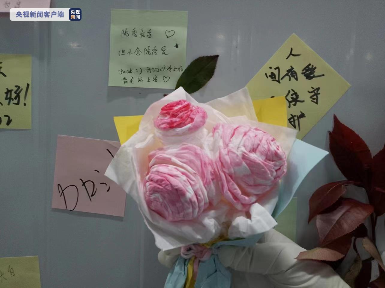 如何讓隔離人員在臨港方艙找到家的溫暖,以最好的心態(tài)共克時(shí)艱?江蘇省援滬醫(yī)療隊(duì)方艙分隊(duì)副領(lǐng)隊(duì)、中大醫(yī)院總領(lǐng)隊(duì)黃英姿副院長的建議下,統(tǒng)籌布置一面獨(dú)特而暖心的“心愿墻”。艙友們紛紛前來書寫下自己的心愿,還有一位小艙友送來了自制的手工花束。