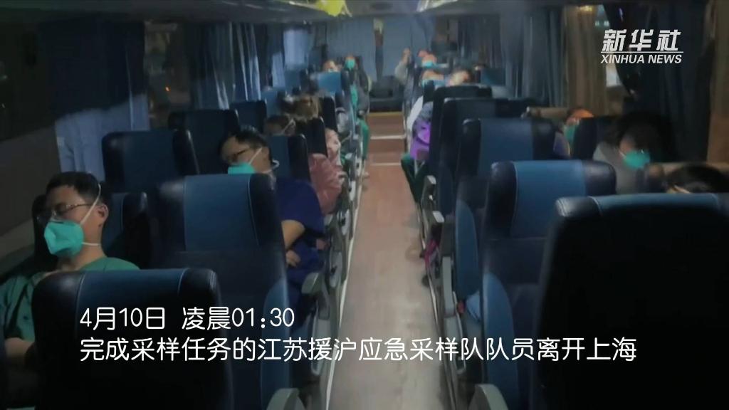 4月10日凌晨1時30分,完成核酸采樣任務(wù)的江蘇援滬應(yīng)急采樣隊隊員離開上海,返回江蘇。在返程的車上,他們倒頭就睡。