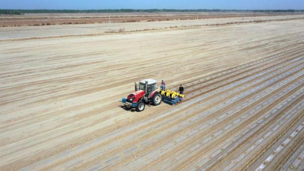 新疆喀什地區莎車縣70萬畝棉花全面開播 北斗導航無人駕駛智能播種