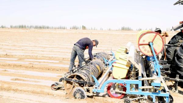隨著氣溫逐漸回暖,新疆喀什地區莎車縣各鄉鎮搶抓氣溫回升土壤墑情好的有利時機播種棉花,田間地頭一派繁忙景象。目前全縣70萬畝棉花全面開播,預計4月中下旬可全部播種完畢。